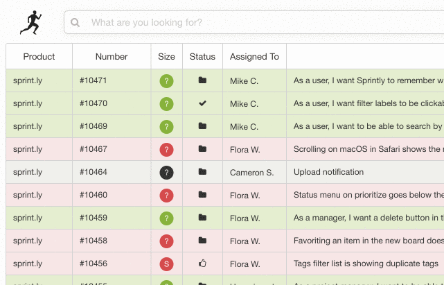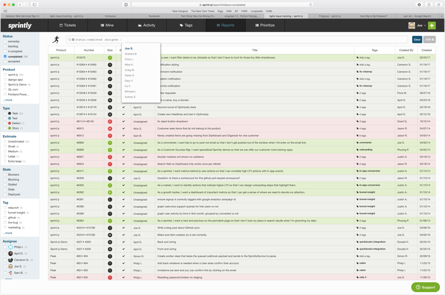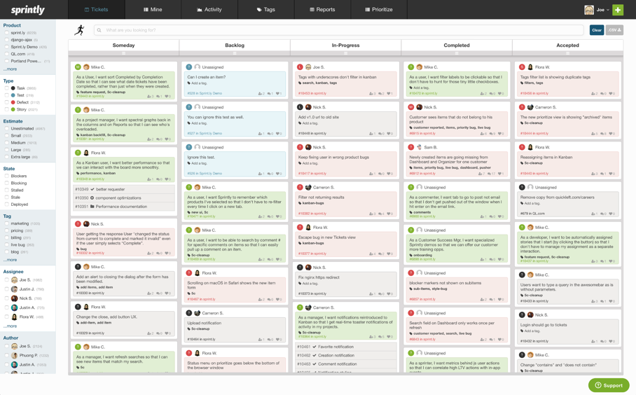Sprintly offers an advanced search syntax with a nice type-ahead UI. Prefer using the mouse? Our point-and-click search filters makes finding tickets a breeze.